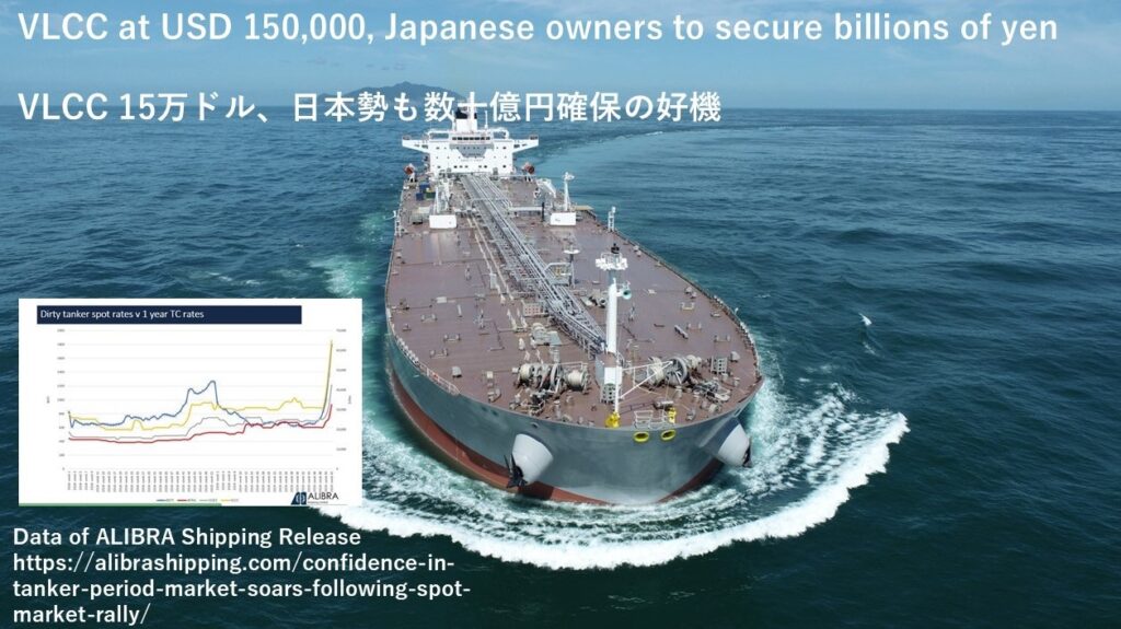 VLCC at USD 150,000, Japanese owners to secure billions of yen VLCC 15万ドル、日本勢も数十億円確保の好機