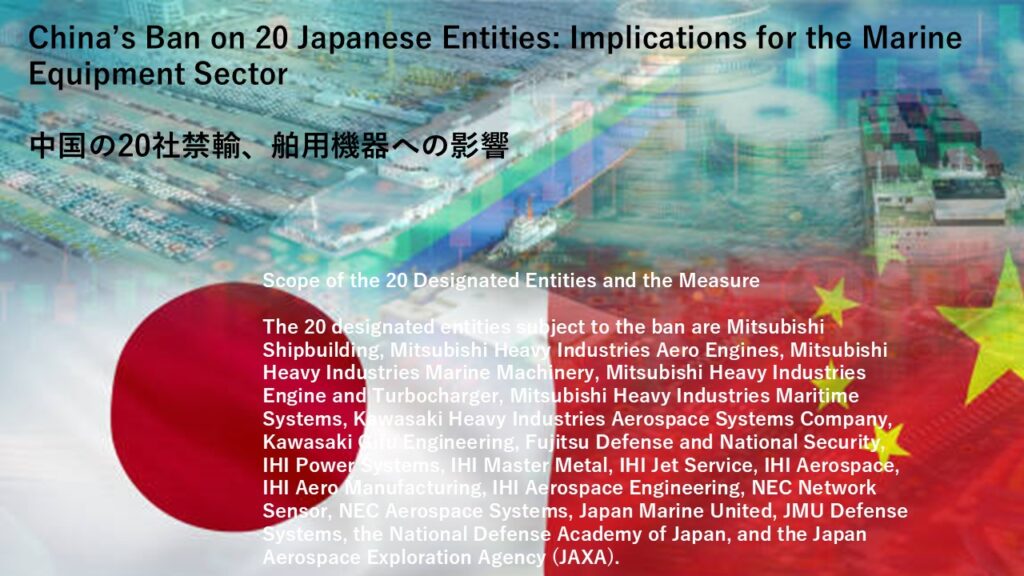 China’s Ban on 20 Japanese Entities: Implications for the Marine Equipment Sector 中国の20社禁輸、舶用機器への影響