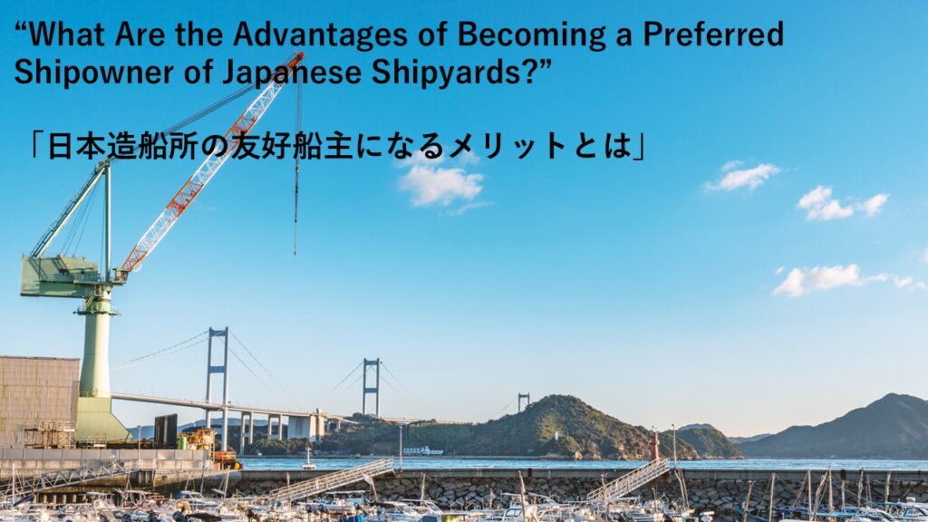 “What Are the Advantages of Becoming a Preferred Shipowner of Japanese Shipyards?” 「日本造船所の友好船主になるメリットとは」 Revised at 17:45 JST on April 10.References to “Japanese shipowners (80%) and overseas shipowners (20%)” — and ...