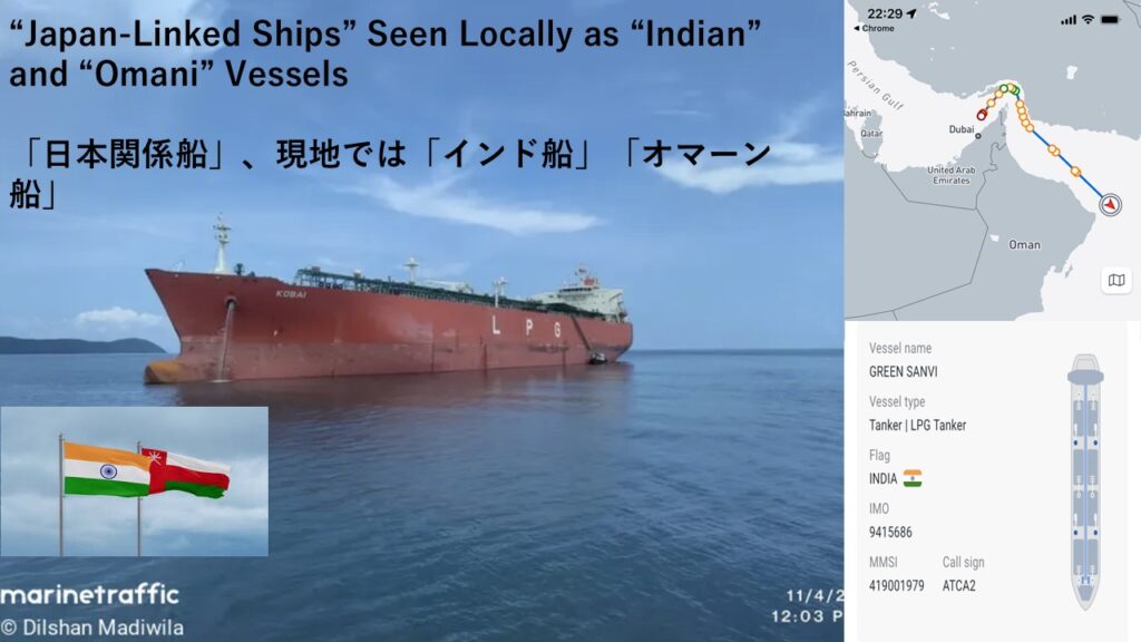 “Japan-Linked Ships” Seen Locally as “Indian” and “Omani” Vessels 「日本関係船」、現地では「インド船」「オマーン船」