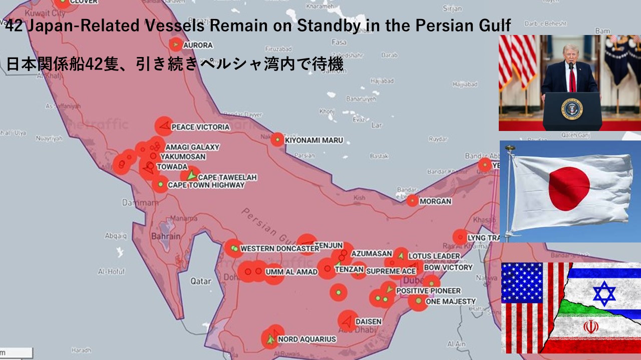 42 Japan-Related Vessels Remain on Standby in the Persian Gulf 日本関係船42隻、引き続きペルシャ湾内で待機