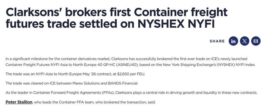 → The “first trade” concluded in ICE-listed container freight futures, and what it specifically entails