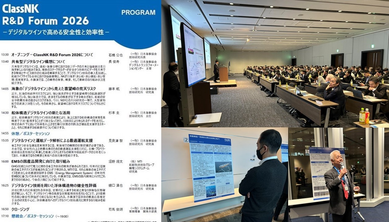 On 21 January, the Research Institute of the Research and Development Division of ClassNK held the “ClassNK R&D Forum 2026 – Enhancing safety and efficiency through digital twins –” at Tokyo Garden Terrace Kioicho in Chiyoda Ward, Tokyo.