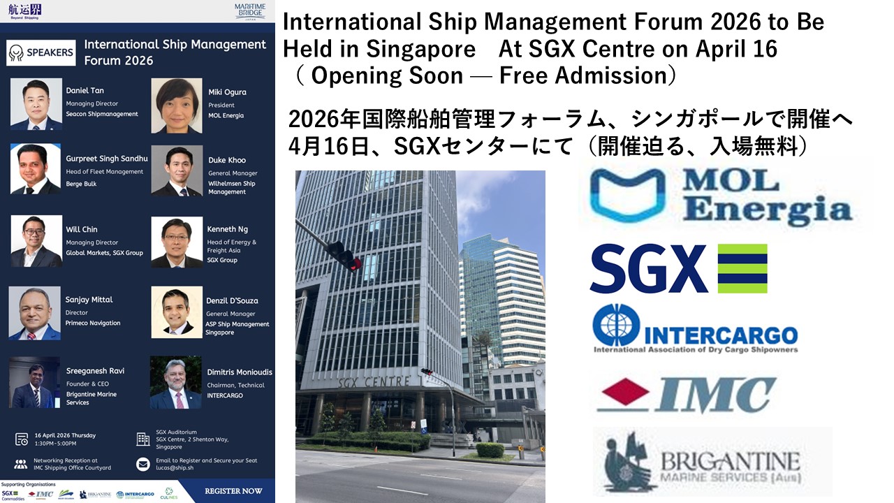 Free Entry as Ship Management Forum 2026 Nears at SGX 入場無料、開催迫る―国際船舶管理フォーラム2026、SGXで開催