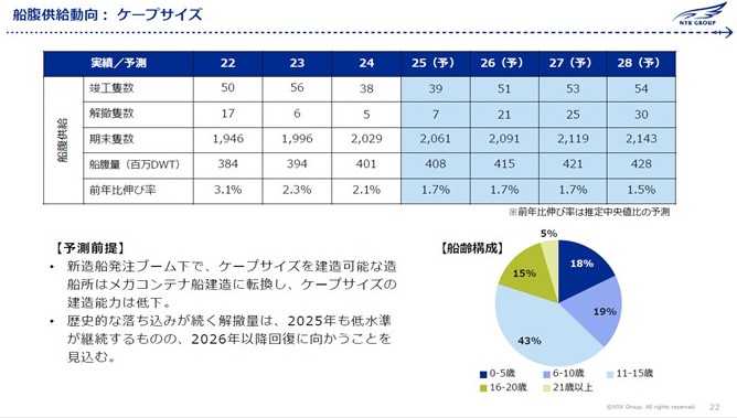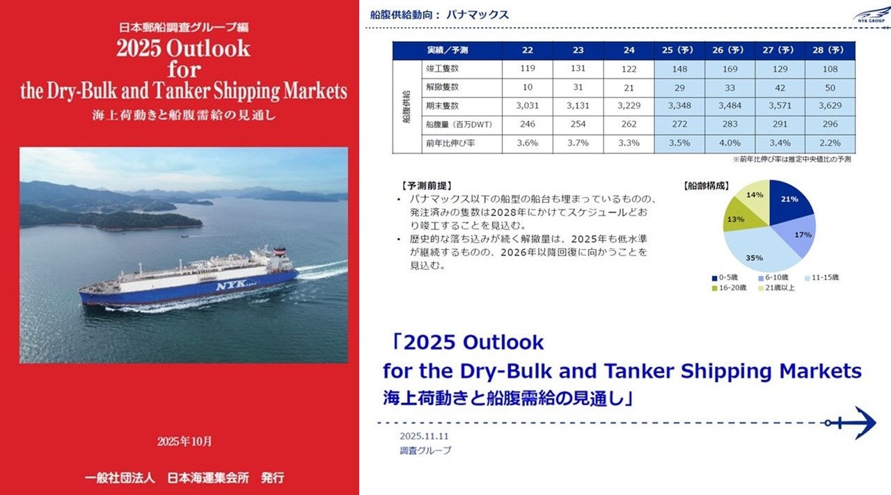→ According to the latest analysis in the “2025 Outlook for the Dry-Bulk and Tanker Shipping Markets” compiled recently by the research group of NYK, delivery volumes for Capesize, Panamax and Handymax vessels will remain elevated through 2025–26, reflecting the surge of orders placed during the 2021–23 boom.