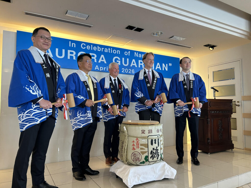 Singapore-based shipowner Kumiai Navigation on April 9 held the naming and delivery ceremony at Kawasaki Heavy Industries’ Sakaide Works for its latest dual-fuel very large gas carrier (VLGC), Aurora Guardian (IMO No. 1015399, tank capacity 86,700 cubic metres, Singapore flag), which had been ordered from Kawasaki Heavy Industries.