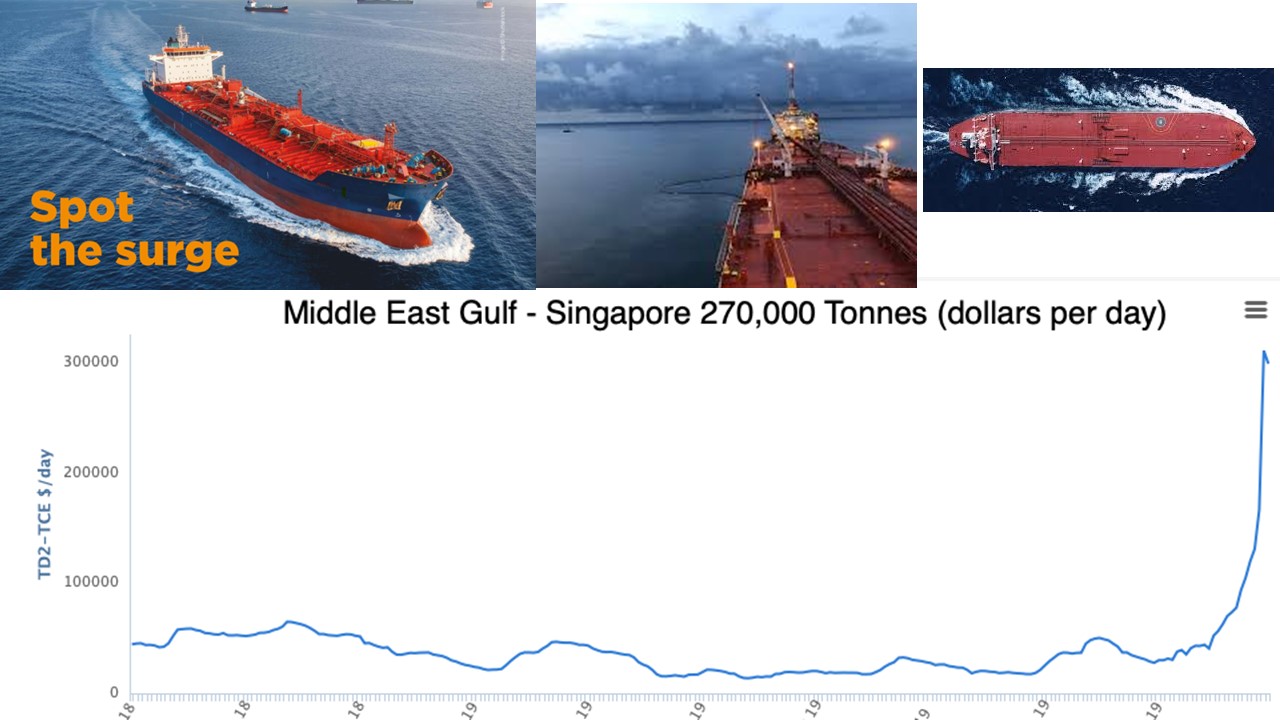 アジアのVLCC(超大型原油タンカー)運賃が急上昇し、ポスト・コロナの回復期以来で最も高い水準に達している。