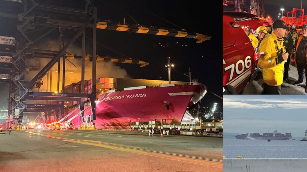 ONE’s 8,212-TEU Container Ship Catches Fire at the Port of LA ONEの8,212TEU型コンテナ船がLA港で火災