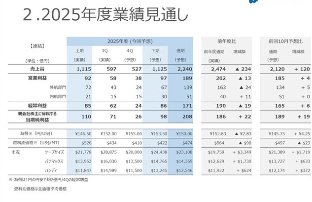 NS United Kaiun Kaisha announced on 30 January that it has revised up its consolidated net profit forecast for the fiscal year ending March 2026 to ¥20.8bn.