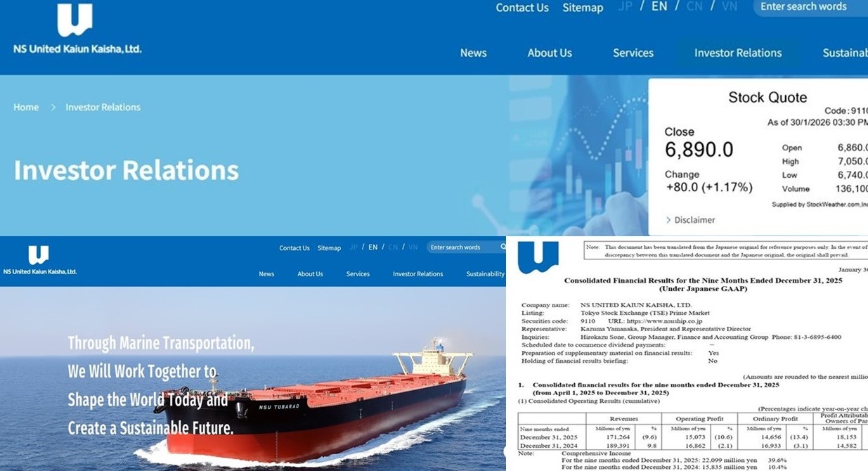 → On the same day, the company also announced a ¥20 increase in its year-end dividend from the previous forecast, raising the annual dividend to ¥265 per share. Shares of NS United Kaiun Kaisha closed at ¥6,890 on the Tokyo Stock Exchange Prime Market on 30 January, up ¥80 from the previous day, setting a new year-to-date high.