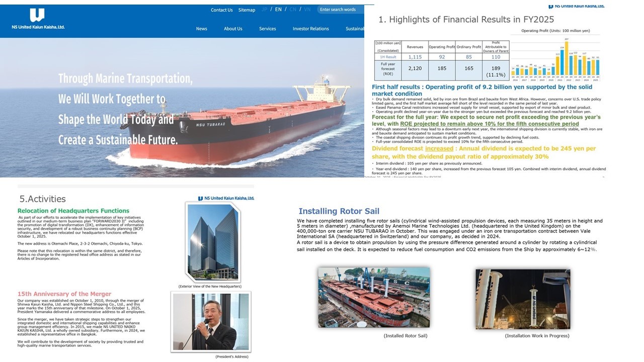NS United Kaiun Kaisha announced on October 31 that it expects its consolidated net profit for the fiscal year ending March 2026 to reach ¥18.9 billion (approximately USD 130.34 million, based on an exchange rate of ¥145 to the dollar).