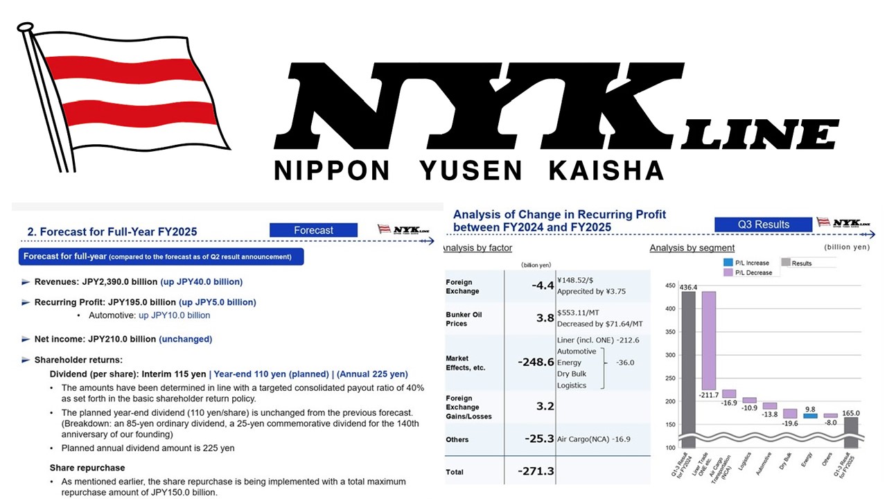 NYK said on 4 February that consolidated net profit for the year ending March 2026 is expected to reach ¥210bn. While the net profit forecast was left unchanged from the previous announcement, consolidated ordinary profit was revised up by ¥5bn to ¥195bn.