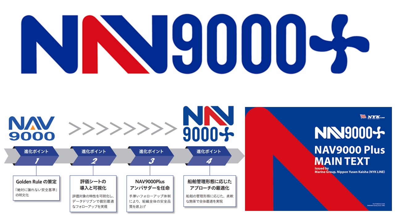 NYK announced on the 17th that it has upgraded its proprietary safe operation standard “NAV9000,” applicable to the Group’s operated vessels, shipowners and ship management companies, and has newly formulated “NAV9000 Plus.” The new standard will be introduced from April 2026.