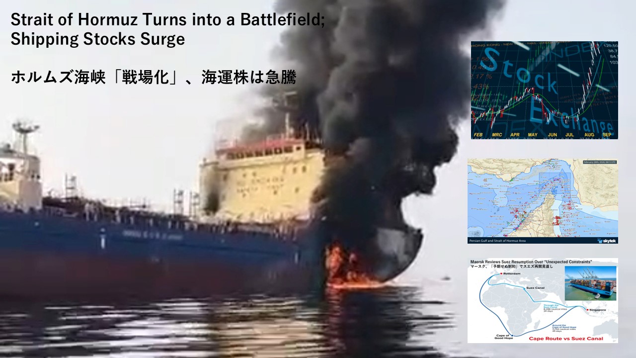 Strait of Hormuz Turns into a Battlefield; Shipping Stocks Surge ホルムズ海峡「戦場化」、海運株は急騰
