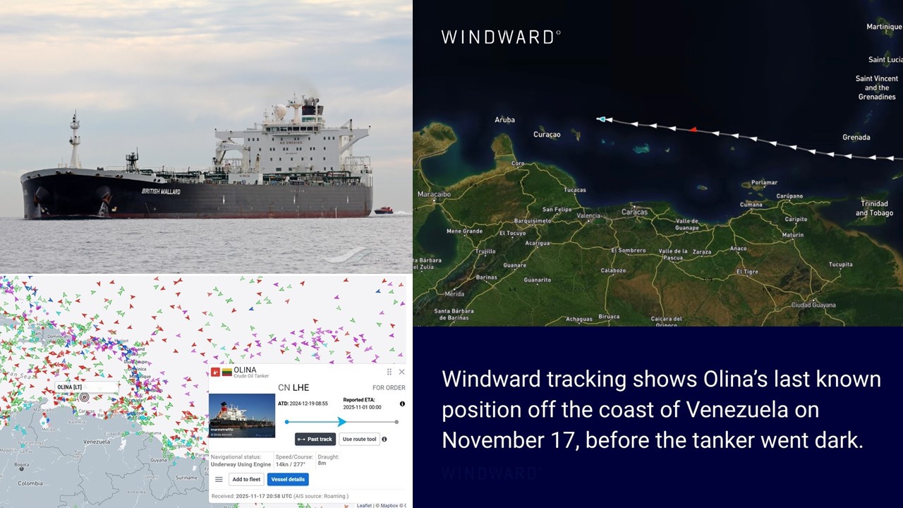In the early hours of the 9th, U.S. Southern Command (USSOUTHCOM) and the U.S. Coast Guard (USCG) seized the sanctions-designated Aframax crude oil tanker Olina (IMO number: 9282479) in the Caribbean Sea.