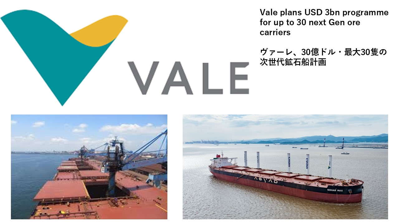 複数の海運関係者によると、ブラジル資源大手のValeが、総額約30億ドル規模、最大30隻の次世代大型バルカー建造計画を進めていることが分かった。